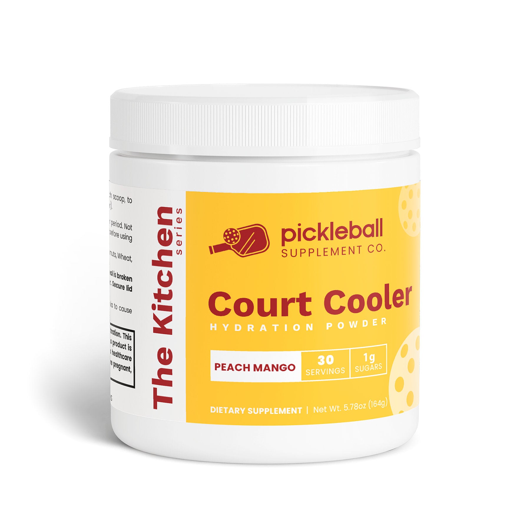 Court Cooler (Peach Mango) provides crucial electrolytes that help keep you hydrated and energized throughout the day, perfect for any level of activity from gaming to running.